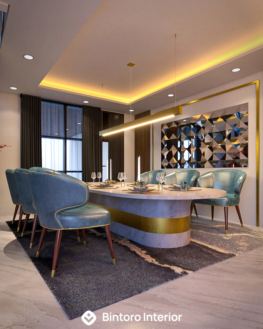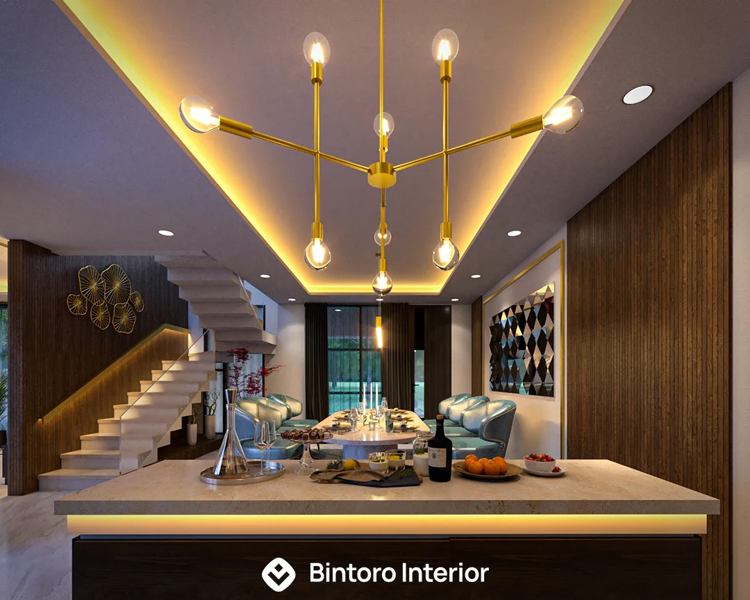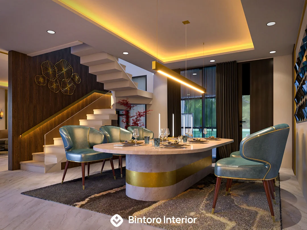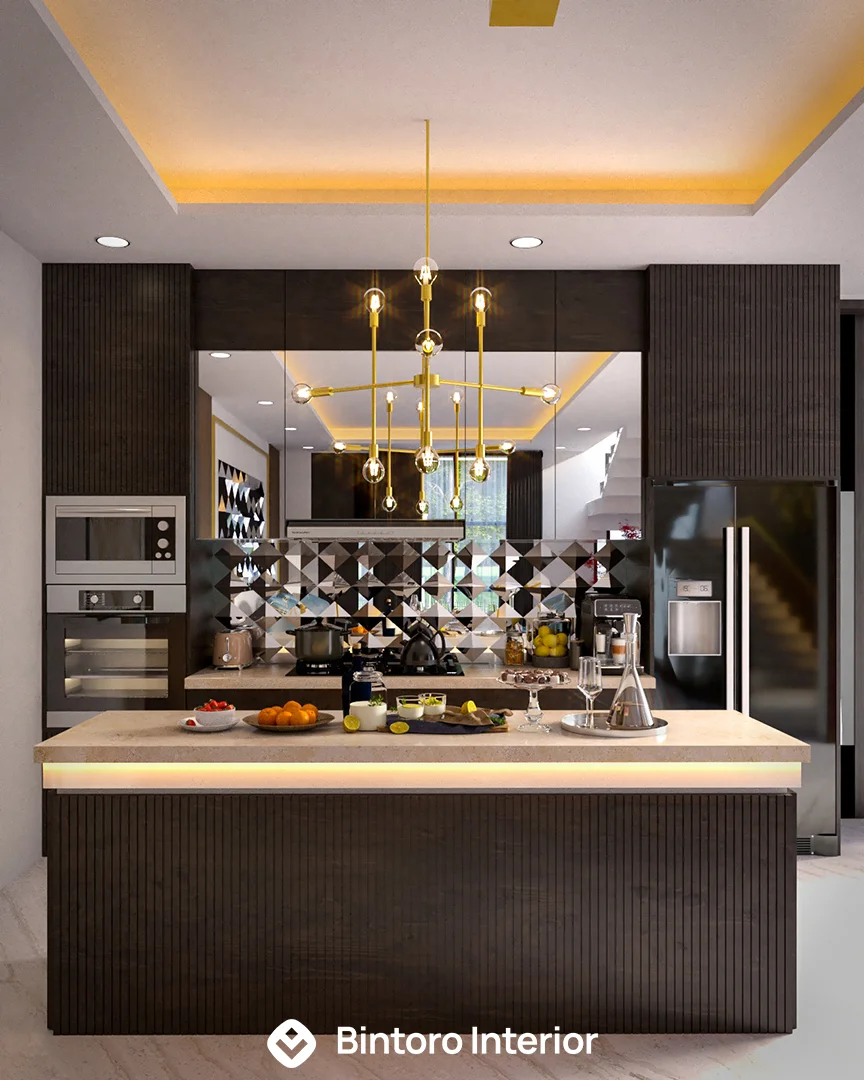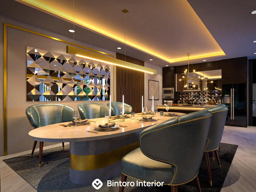 Area ini didesain dengan konsep Modern yang menawan, mengutamakan keselarasan visual dan fungsionalitas ergonomis. Fasad kitchen set menampilkan garis sleek yang bersih, didominasi finishing kabinet HPL berwarna netral atau kayu terang yang elegan, dipadukan dengan meja makan minimalis. Penggunaan backsplash sederhana dan pencahayaan accent yang tersembunyi menciptakan suasana ruang yang terang, rapi, dan terasa mewah. Percayakan perancangan dapur dan ruang makan modern Anda kepada Bintoro Interior untuk hasil yang pasti premium dan berkualitas terjamin.