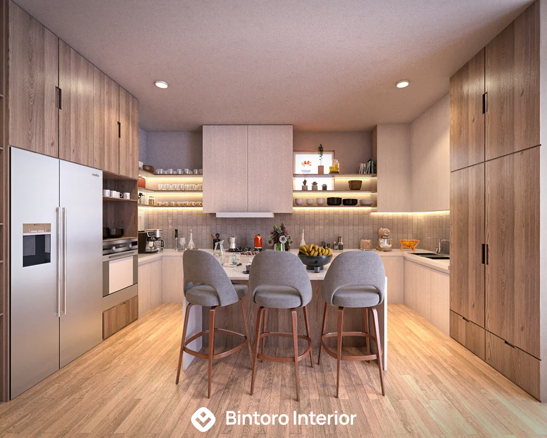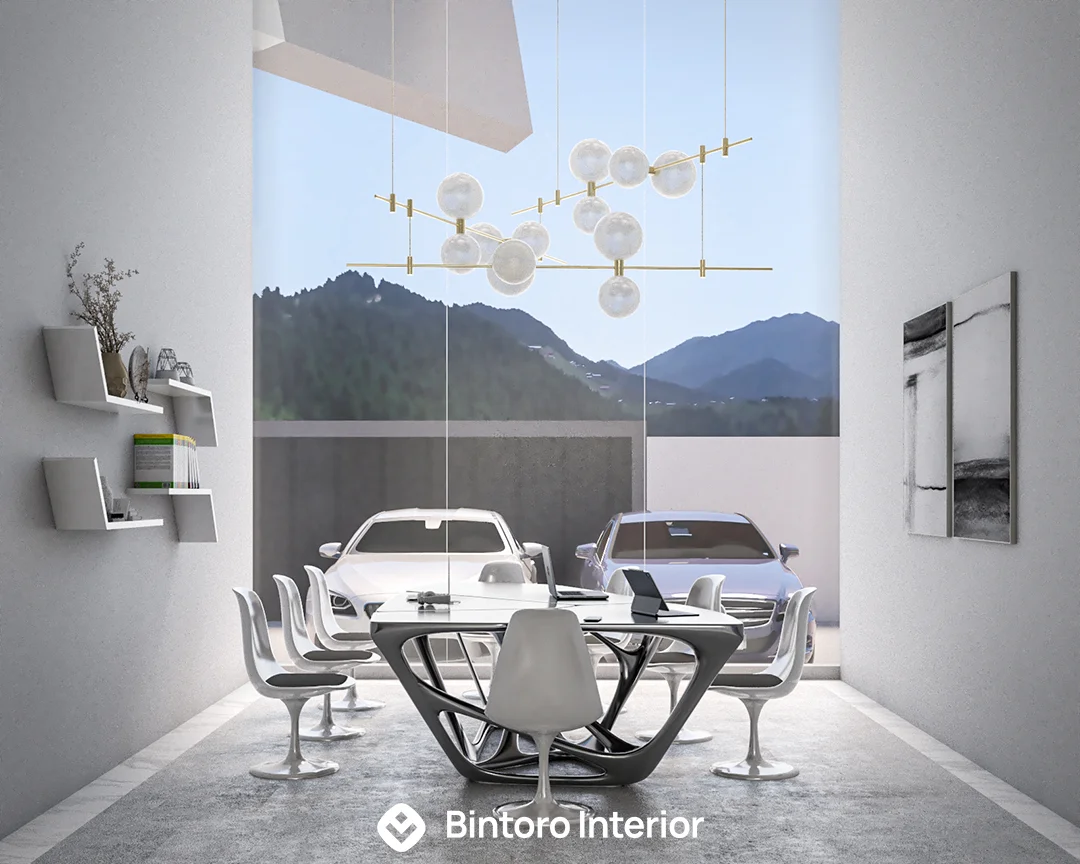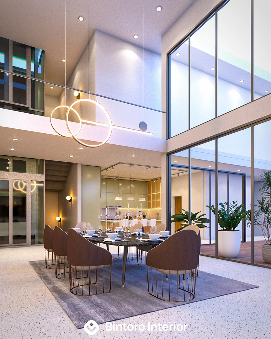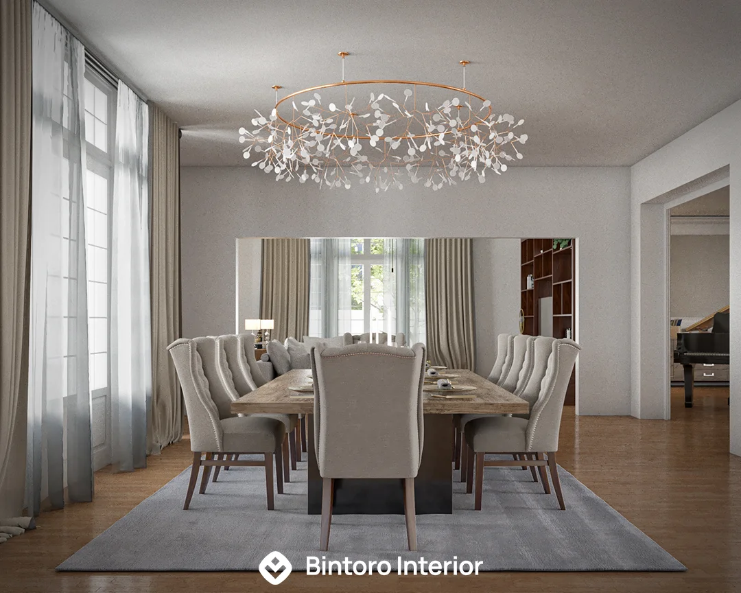 Bintoro Interior menawarkan beragam pilihan desain ruang makan yang elegan, mulai dari gaya American Style dan European Style yang fokus pada meja besar, kursi mewah, dan chandelier berkelas untuk suasana formal. Bagi penggemar gaya modern yang hangat, kami menghadirkan konsep Japandi dengan meja kayu natural dan kursi minimalis, atau Contemporary Style yang berfokus pada wall panel artistik dan pencahayaan dramatis. Kami juga siap mewujudkan desain Futuristik yang unik melalui furnitur geometris dan teknologi terintegrasi. Percayakan perancangan ruang makan Anda kepada tim profesional kami, dan ruangan impian Anda akan terwujud dengan desain premium serta kualitas terjamin.