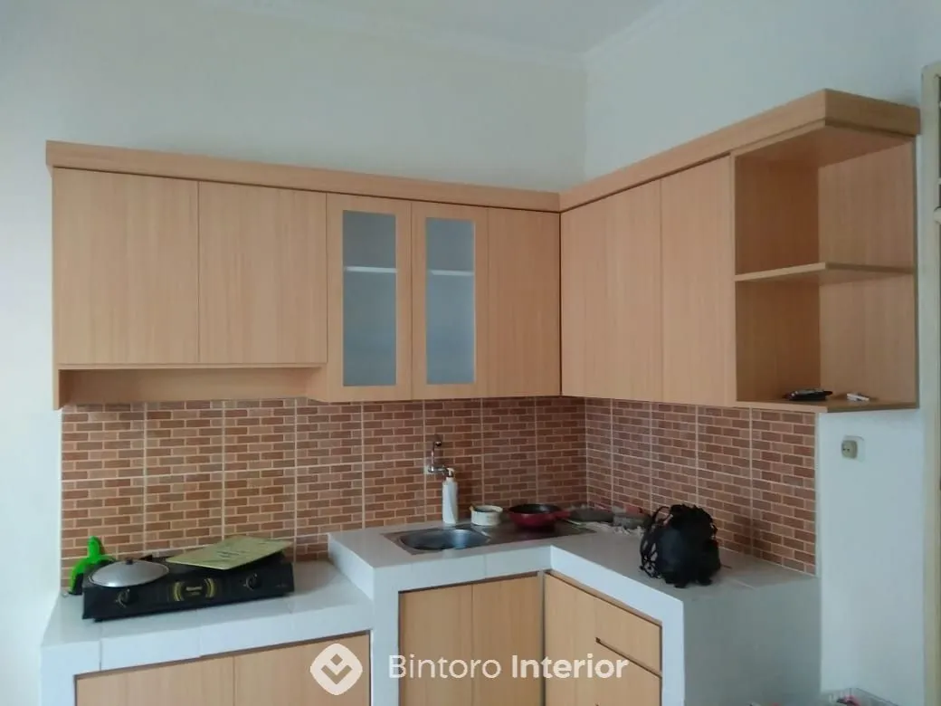 Proyek kitchen set Ibu Agni di Pamulang ini mengusung desain Minimalis Modern dengan tata letak L-shape yang sangat fungsional. Dominasi kabinet kayu terang berbahan HPL, dipadukan backsplash keramik mozaik, menciptakan tampilan dapur yang bersih, rapi, dan hangat. Dapur ini dirancang optimal untuk efisiensi dan estetika minimalis.Bintoro Interior adalah mitra terpercaya Anda untuk mewujudkan desain dapur Minimalis Modern yang fungsional dan elegan. Percayakan perancangan dan pembuatan kitchen set impian Anda kepada kami yang selalu mengutamakan kualitas.